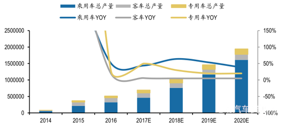 The development of new energy passenger car is relatively sound. The total credit combination system boosts its growth in the medium and long term. In 2016, the yield of new energy passage car was 344 thousand vehicles, and the sales volume was 336 thousand. Among that, the yield and sales volume of BEV were 263 thousand and 257 thousand, a year-on-year increase of 73.1% and 75.1% respectively.