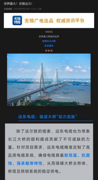 官媒点赞!远东助力世界最大跨度斜拉桥——常泰长江大桥通车!